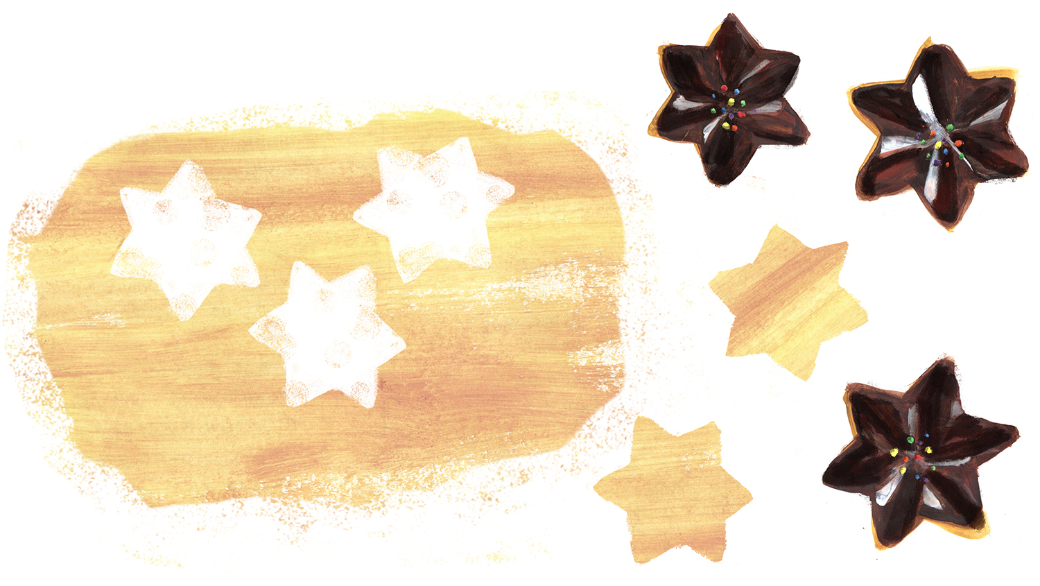 Preheat oven to 400°F. Roll dough until 1/3" thick. Try not to overwork the dough. Cut out cookies with cookie cutters. Transfer to a parchment-lined baking sheet and space cookies 2” apart. Refrigerate baking sheets for 30 minutes before baking (this makes sure the cookies will keep their shape while baking). Bake cookies until lightly brown, about 6-8 minutes. Let cool completely on rack.