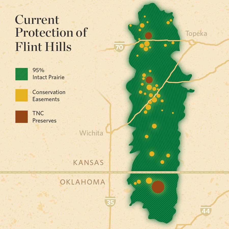 Series of maps on the conservation of the Flint Hills Tallgrass Prairie.